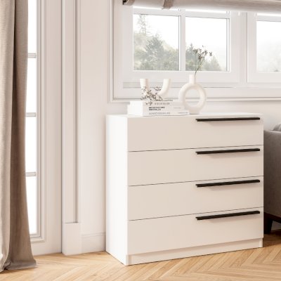 Комод «Айрон» — вместительный комод с четырьмя  вместительными ящиками — универсальное решение, которое подойдёт и для спальни, и для домашнего кабинета, и для гостиной. Эргономичные черные ручки контрастного оттенка делают эту модель более изящной. Комод идеально подходит для хранения белья, одежды, аксессуаров, важных документов, украшений и мелочей. Верхнюю крышку можно использовать как дополнительную полочку для лампы.