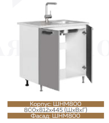 ШНМ800 Шкаф нижний под мойку Графит софт/Белый глянец холодный