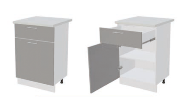 ШН1Д1Я600 Шкаф нижний с 1-м ящиком и 1-й дверью Белый глянец холодный/Графит софт