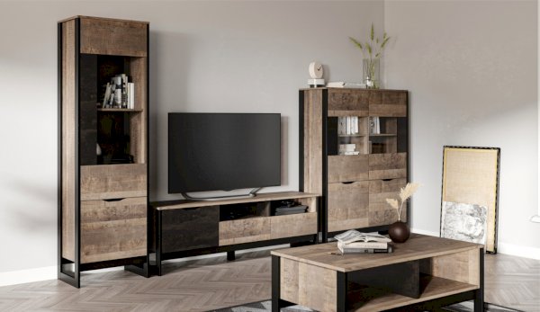 Оригинальная функциональная стенка Стокгольм впишется в любое современное пространство гостиной в квартире или загородном доме. Особенность дизайна – это сочетание реалистичных по цвету и тактильности трендовых декоров, которые соответствуют последним городским тенденциям. «Дуб Гранж» привлекает песочным оттенком и имитацией вручную обработанного дерева с выразительной зернистой текстурой, характерной формой досок. Стильный серый цвет «Железного камня» с металлическими разводами и новая текстура состаренной штукатурки в сочетании с гладкостью металла вносят индустриальный колорит. Оригинальные ножки-опоры из контрастного профиля МДФ, расположенные по бокам модулей, имитируют металл и подчеркивают стиль коллекции. Витрины из стекла создают ощущение свежести, легкости и чистоты.