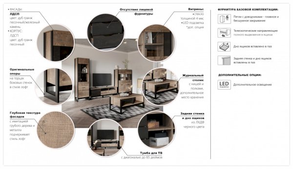 Модульная гостиная Стокгольм Дуб гранж песочный/Железный камень (Империал) - за 44 840 руб. в Пензе. Купите на сайте mebelmarket-penza.ru или по телефону 8(800)505-30-63 уже сегодня! Уточнить наличие, комплектацию, актуальную цену можно бесплатно у менеджера ежедневно. Закажите Модульная гостиная Стокгольм Дуб гранж песочный/Железный камень (Империал) до конца акции! Доступна покупка в кредит, рассрочку. Доставим со склада или на заказ.