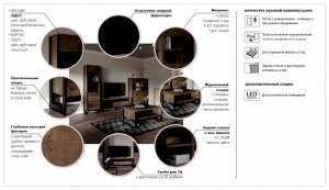 Модульная гостиная Стокгольм Дуб гранж песочный/Железный камень (Империал)