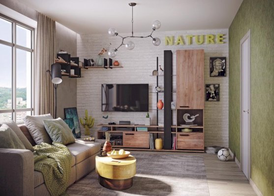 Чтобы сохранить легкость и простор в маленькой гостиной выбирайте Тумба ТВ малая. Низкая мебель сделает комнату просторнее, а стекло в сочетании с древесным декором создаст ощущение простоты. Комбинированный вариант открытых полок со шкафчиком с глухим фасадом отлично подойдет для размещения игровой приставки, дисков и геймпадов. Ширина тумбы позволит без труда разместить телевизор с диагональю до 44''. Регулируемые опоры позволят компенсировать незначительные неровности пола.
