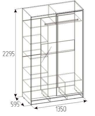 Шкаф-купе Домашний ЛДСП/ЛДСП шириной 1350 мм подойдет для любой комнаты: спальни, гостиной, прихожей, детской. Продуманное внутреннее наполнение шкафа состоит из стеллажа для белья, стационарной штанги длиной 843 мм. В изготовлении шкафа-купе Домашний использована система стальных профилей «Найди». Цвет системы подобран в цвет основного декора шкафа-купе. В комплектацию шкафа-купе Домашний входит шлегель - щётки с упругим ворсом, которые смягчают удары дверей при закрывании, а также защищают вещи от попадания пыли.