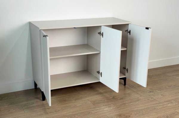 Дверцы комода выполнены из МДФ с фрезеровкой и скрывают за собой просторное хранилище для различных вещей.