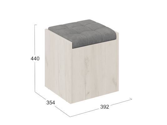 Каркас новинки изготовлен из ЛДСП 16 мм-это достаточно прочный материал, который позволит выдерживать больший вес по сравнению с бескаркасными аналогами. Используемые материалы пуфа схожи со скамьей «Форест», что дает возможность дополнить интерьер кухни нашей новинкой. Одним из основных качеств велюра является прочность и плотность, но при этом уход за изделием максимально прост, а любое загрязнение легко чистится мыльным раствором.