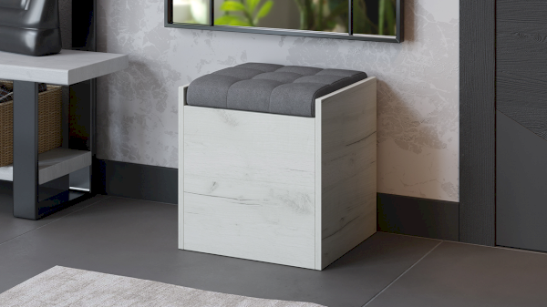Эксклюзивная древесная текстура каркаса пуфа «Дуб крафт Белый» в сочетании с велюром «Серый» станет эффектным дополнением в дизайне прихожей, кухни и других уголках квартиры.