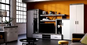 Организовать хранение в современном интерьере можно с помощью стильного двухстворчатого шкафа Инстайл. Модель полностью выполнена из ЛДСП из комбинации двух цветов – серый и белый. Две распашные створки дополнены геометрическими удлиненными ручками. Внутреннее наполнение состоит из двух ниш для необходимых вещей и отделения с хромированной штангой для одежды на вешалках.