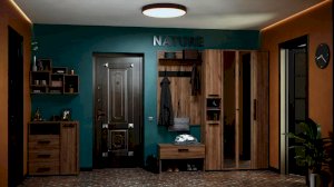 Настенная вешалка поможет использовать пространство прихожей экономно и рационально. Панель оснащена полкой для головных уборов и крючками для верхней одежды и сумок. Верхняя полка глубиной 229 мм крепится с помощью Г-образного полкодержателя. Каждый металлический крючок для одежды выдерживает нагрузку до 5 кг. Детали из черного ЛДСП поддерживают стилистику всей коллекции и подчеркивают выразительность текстуры декора Дуб Табачный с его характерными для благородной древесины крупными трещинами и сучками.