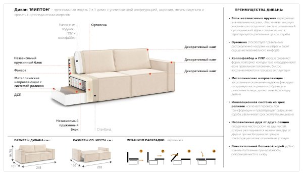 Диван Милтон (Империал) - за 60 776 руб. в Пензе. Купите на сайте mebelmarket-penza.ru или по телефону 8(800)505-30-63 уже сегодня! Уточнить наличие, комплектацию, актуальную цену можно бесплатно у менеджера ежедневно. Закажите Диван Милтон (Империал) до конца акции! Доступна покупка в кредит, рассрочку. Доставим со склада или на заказ.