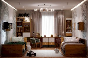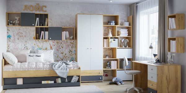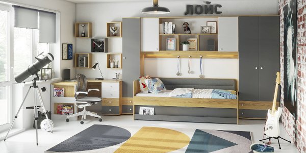 Кровать выполнена как подростковая кровать-тахта с большим выкатным ящиком на роликах. Изголовье и изножье со скругленными углами облицованы ударопрочной кромкой ПВХ 2 мм, что, безусловно, немаловажно для детей и родителей, выбирающих мебель. Обратите внимание, что изножье совсем не высокое и не будет мешать садиться на кровать даже с этой стороны, поэтому кровать можно ставить не только у стены.