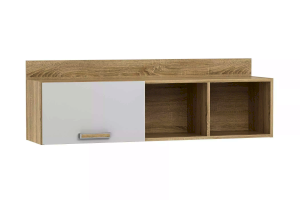Полка НМ 011.38-01 М1 органично дополнит рабочее место в детской. Закрытая секция модуля подойдет для хранения книг. Газлифты максимально высоко поднимают фасад вверх, обеспечивая большую площадь обзора содержимого. Предметы декора будут хорошо смотреться в открытых секциях полки.